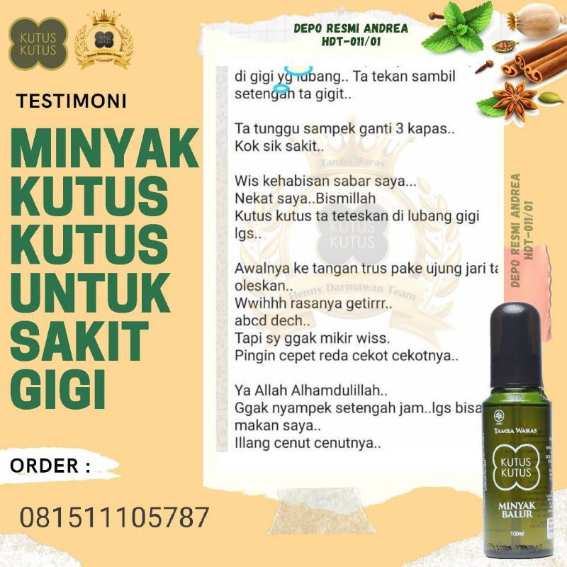 Gangguan pencernaan, sembelit , wasir / ambeien, maag, perut kembung, panas , mengatasi gejala flu, meriang, masuk angin, badan panas, gejala tipes, . Beli minyak kutus kutus untuk sakit gigi/sariwan/gusi bengkak terbaru di shopee. Beli minyak kutus kutus untuk sakit gigi terbaru di shopee. Cocok untuk bayi dan manula. Sakit gigi & minyak kutus kutus kalo sakit gigi mau ngapain . Rekan kerjaku, mas hadi cuma iseng2 pakai minyak kutus kutusku dan sakit giginya hilang tanpa minum ponstand lagi lucu katanya tp nyata . Minyak kutus kutus (mkk) adalah minyak herbal yang terbuat dari campuran 49 tanaman obat yang diolah secara khusus dengan cara tradisional. Berat · 150 gram ; Spesifikasi dari minyak kutus kutus obat sariawan dan sakit gigi ampuh 10ml · merek. Dengan khasiat minyak kutus kutus untuk sakit gigi tersebut maka semakin membuktikan bahwa minyak kutus kutus memiliki khasiat yang luar biasa untuk . Asal barang · lokal ;